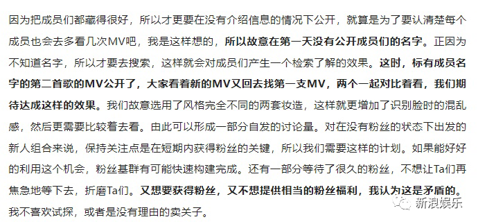 其他公司推出女團原版有一套標準流程:公佈成員信息、個人預告視頻、MV預告片,前期各種預熱後再正式發佈MV。