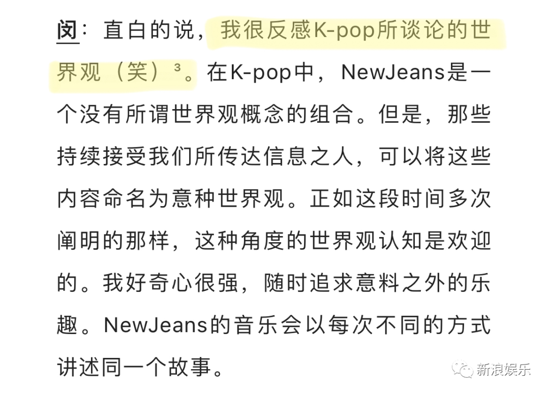再比如直言不諱地批判KPOP現狀、尤其是現在娛樂公司喜歡重點宣傳的世界觀↓