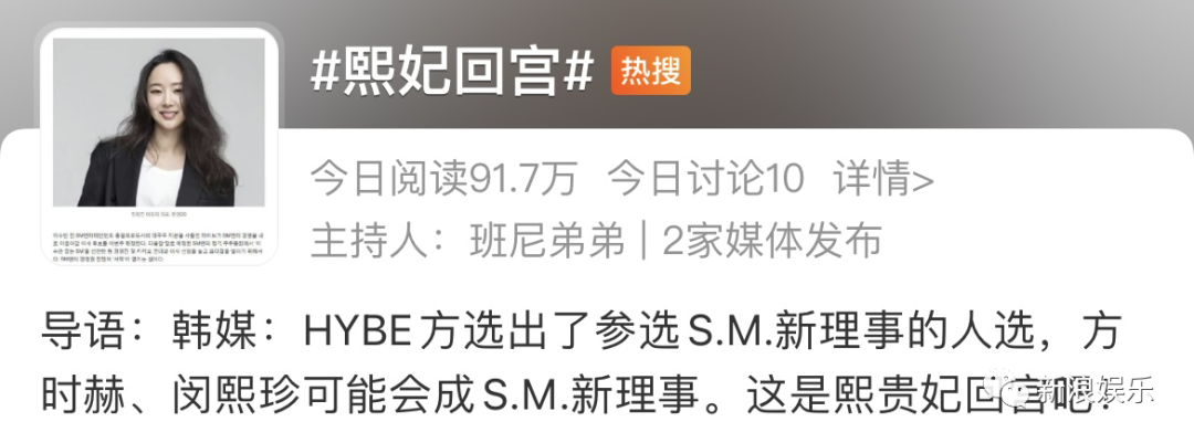閔熙珍大概是HYBE裡最熟悉SM內部組織架構和管理模式的人,HYBE選擇在這個時候把她推到臺前也不足為奇。