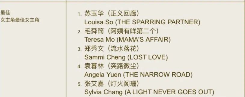 鄭秀文表示拿獎不敢想,自己早就習慣失敗,一切聽天由命。不過,她很感激自己的努力,一直沒有放棄演戲。