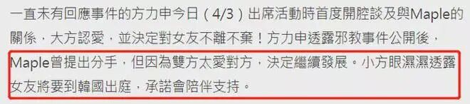 但方力申沒有答應,還提到Maple要去韓國起訴,並答應和女朋友一起去,陪著她給予支持。
