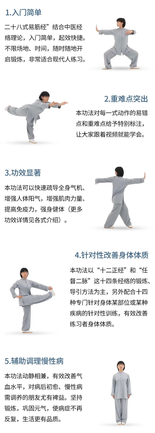 一套“28天易筋經訓練營”,解鎖全套課程,每天堅持練習,舒展筋骨經絡,收穫一個好體質。