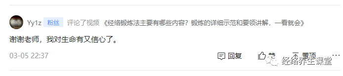 我用短視頻的方式,講解經絡鍛鍊法,令我感到驚喜的是,這個方法讓許多的粉絲從中獲益。有很多粉絲因多年被疾病困擾,在學練經絡鍛鍊法以後,卻意外地得到康復而帶來幸福快樂的生活。