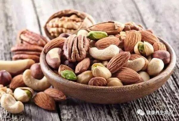 堅果。核桃、松子、棒子、花生、芝麻等果仁中,富含維生素E,這是一種有效的抗氧化劑,可防止體內不飽和脂肪酸的過分氧化,防止皮膚過早出現老年斑(壽斑),也可有效地阻止褐色素在皮膚中沉積,防止面部出現褐色斑紋、斑塊;維生素E還具有促進細胞分裂、再生、延緩細胞變老、恢復皮膚彈性的作用;果仁中含有的多種氨基酸,維生素A,D,K及鐵、磷、鋅、錳等,對促進毛髮、指甲生長,防止脫髮、過早白髮和防止皮膚乾燥粗糙、過早衰老均具有很大的作用。