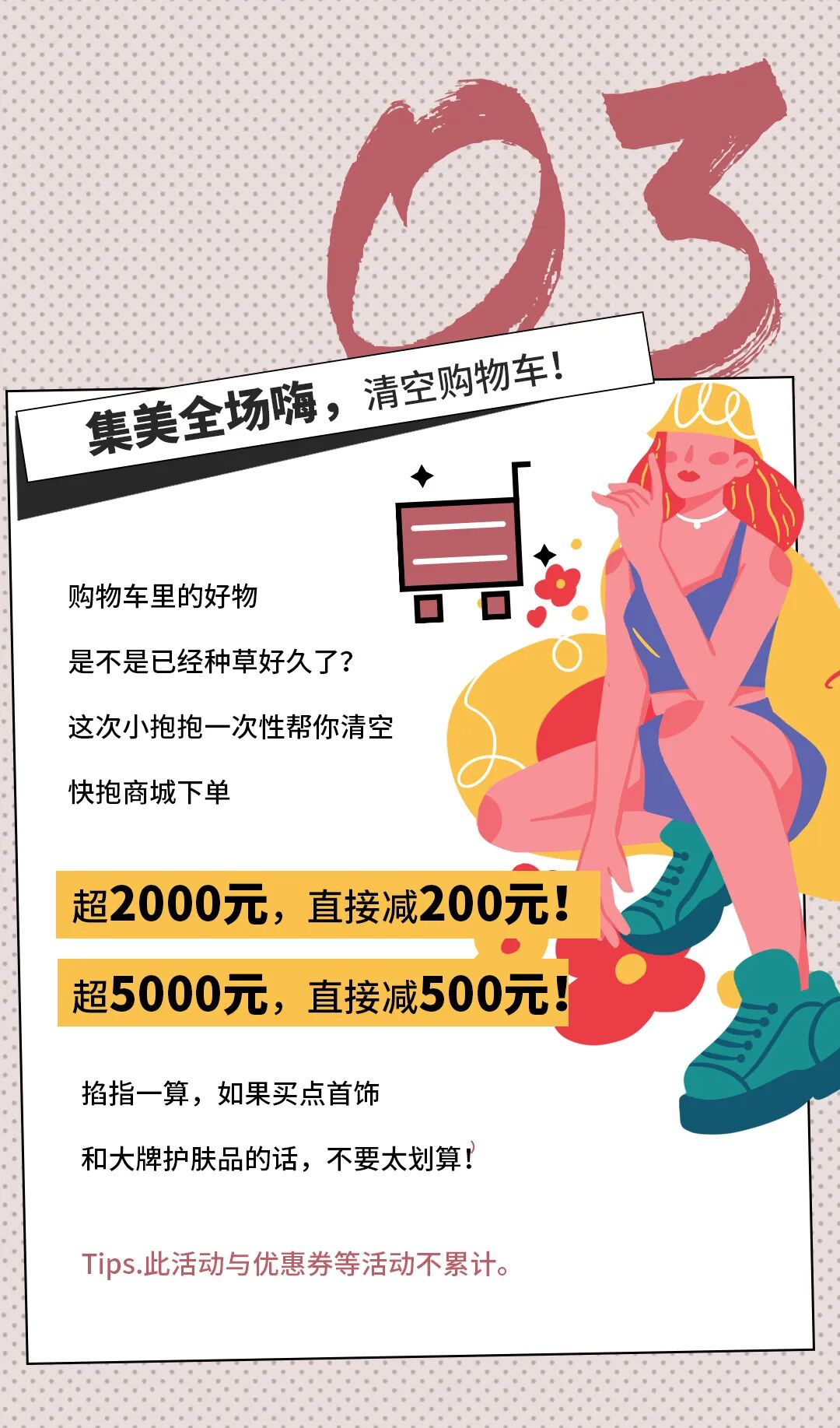 新人券、新人滿減不與女人節現金券、折扣、滿減等活動疊加。