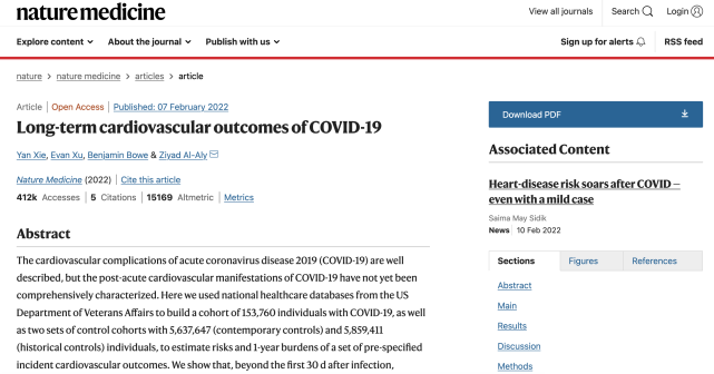 發表於《Nature Medicine》(自然醫學)雜誌網站的一項大型研究中,對新冠感染後的心血管疾病發病風險進行了對照研究,研究結果顯示,在感染新冠病毒後,會增加20種心血管疾病的長期風險,包括了腦血管疾病、心律失常、缺血性以及非缺血性心臟病、心包炎、心肌炎、心力衰竭以及血栓栓塞性疾病。