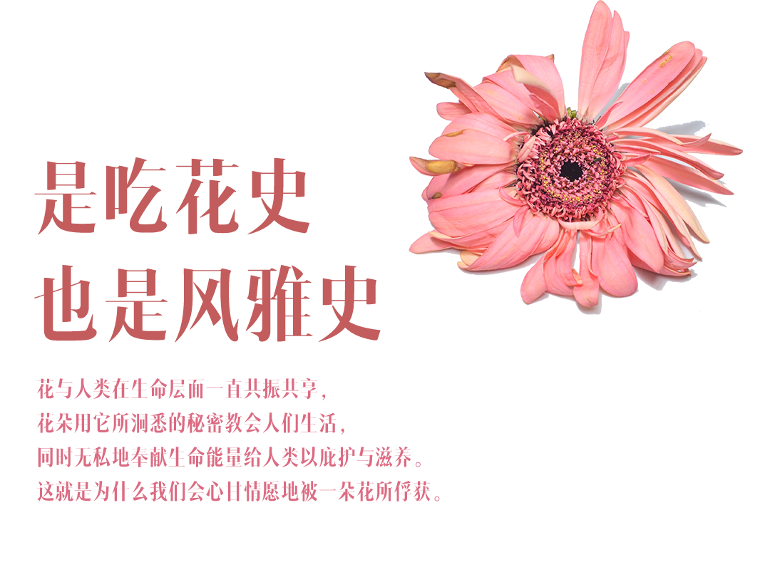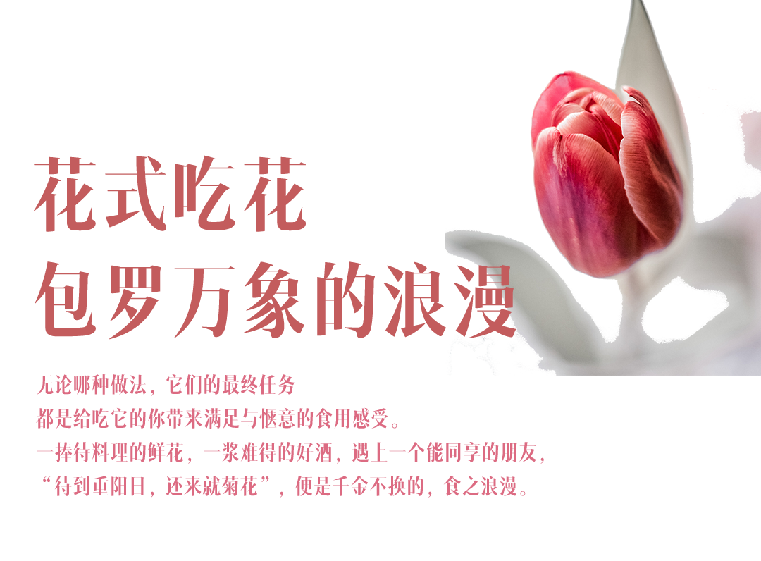 作為美食文化大國,鮮花入饌在我國曆史悠久。民間常有“春吃鮮花夏吃果,秋食野菌冬喝湯”的諺語流傳。花式“吃花”,不僅食之浪漫,更蘊藏著許多有關生命的智慧。