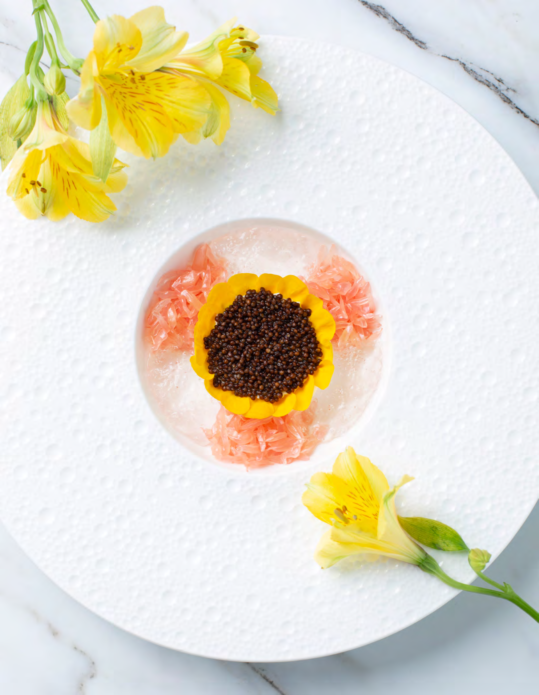美食與鮮花有著很多共同性,它們都能將人與自然、人與人相互連接。因此以花廚為代表的新中式融合菜認為花不只是味蕾上的享受,更是用來溝通自然、治癒人心的靈丹妙藥。