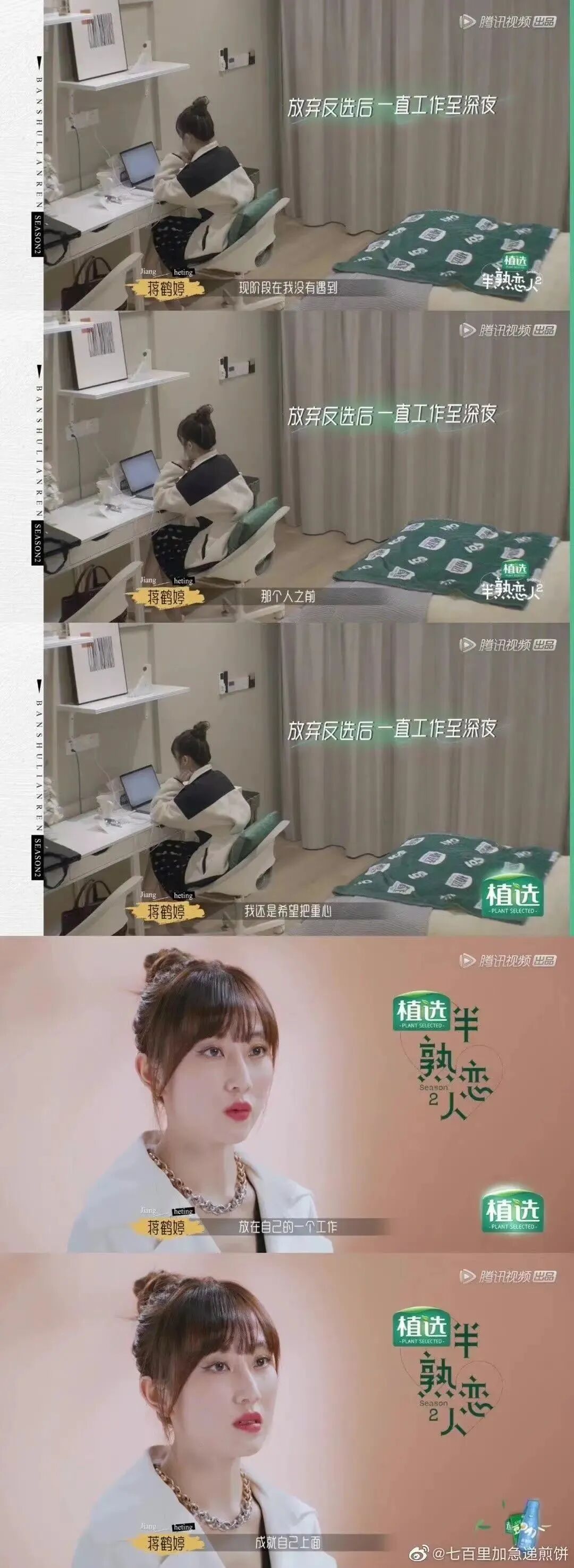 蔣鶴婷下車的背後,其實沒有多複雜的思考鏈路,不是男嘉賓的條件不匹配,不是肩負大女主搞事業的光環,只是因為“再錄製下去就太影響工作了”。