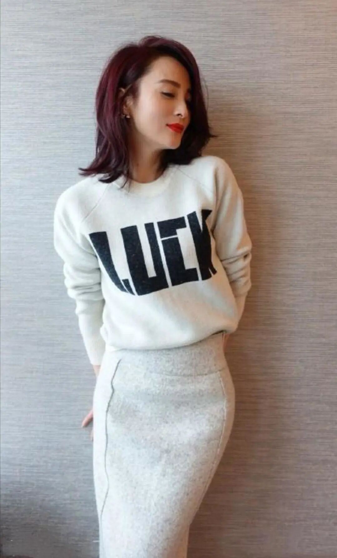 下身是一條緊身半身裙,修身的款式勾勒出她完美的腰臀曲線,完全不像一個剛生完二胎的媽媽。高腰的緊身設計顯高顯瘦,由內而外散發著女性的嫵媚大氣,相當耐看。豎條紋的裝飾使裙子的版型看起來更有立體感,同時,豎條紋也能在視覺上拉高身高。