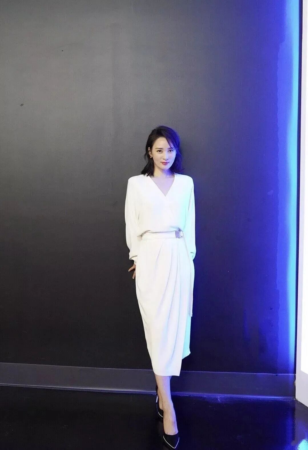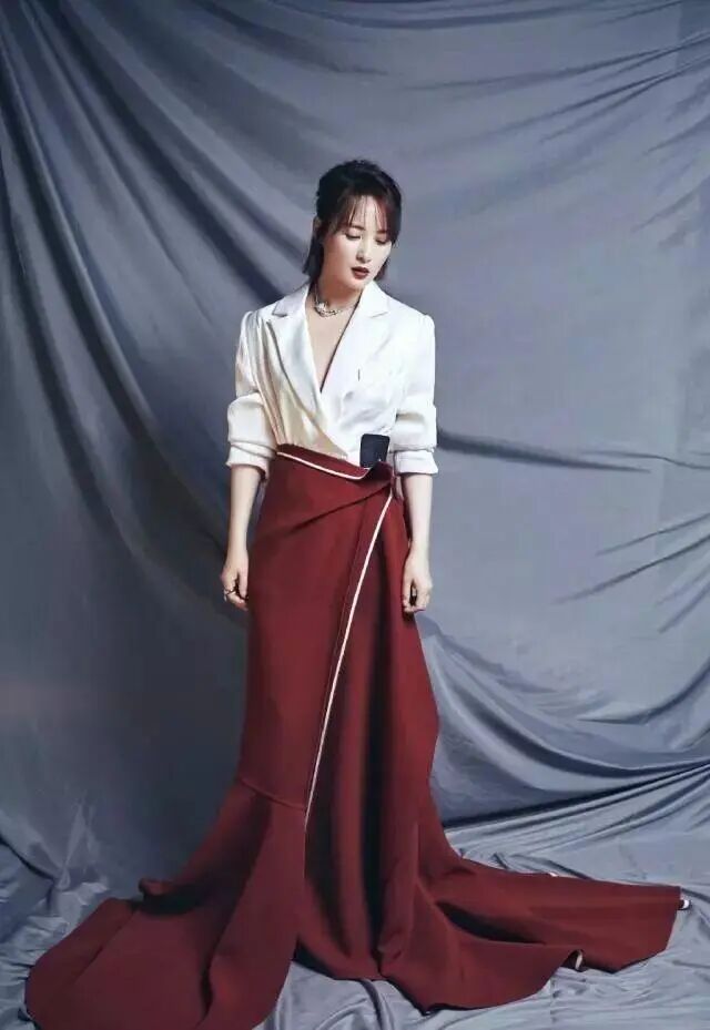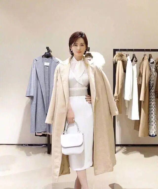 穿上禮服裙的蔣勤勤氣質氣質優雅,這身白色連衣裙比較寬鬆,看起來乾淨又大方。V領的造型顯瘦,也完美展現了精緻的鎖骨和修長的頸部曲線。腰間加上一條腰帶,勾勒出身材曲線,也不會使整體寬鬆的造型顯得懶散。裙子的長度也剛剛好,露出一小截小腿,不會讓穿搭看起來拖沓。