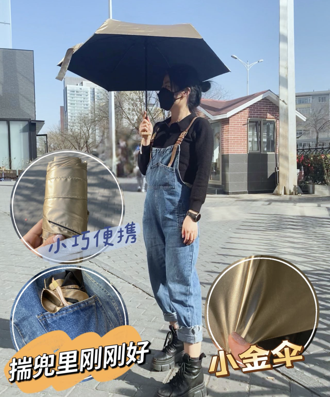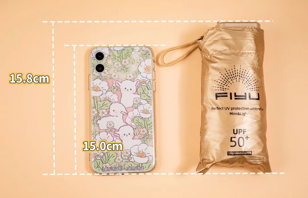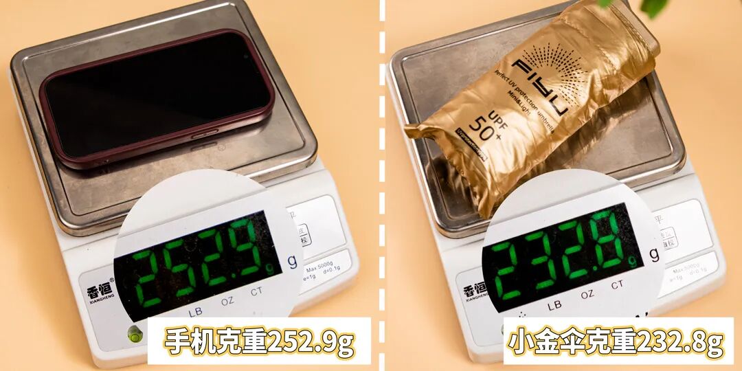 3、小金傘收傘後,僅比6.1寸的手機大0.8cm,重量還不足一個手機的重量。