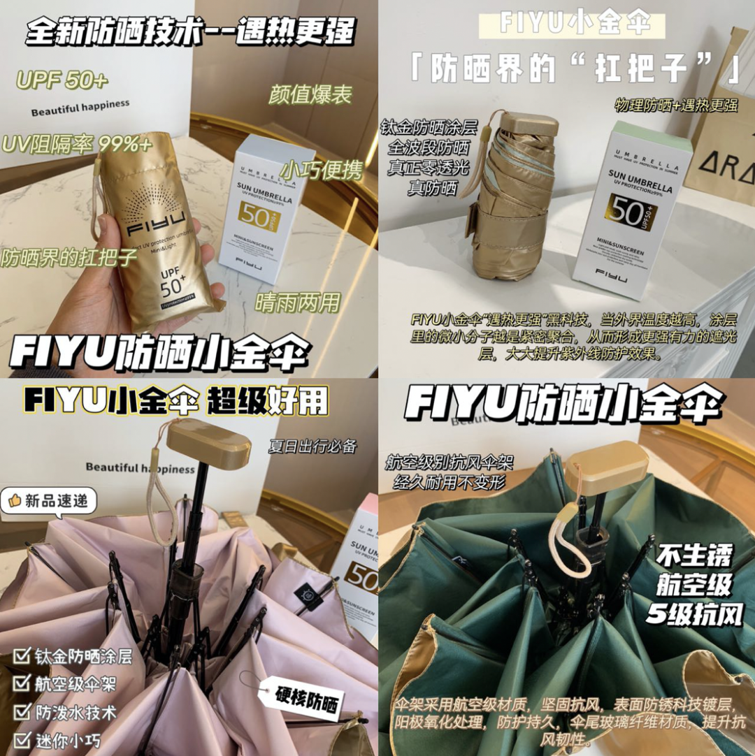 1、日本FIYU小金傘,來自日本輕奢品牌連續多年在日本遮陽傘品牌中銷量前列。