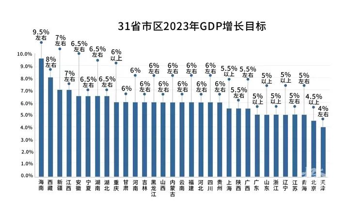 分析中我們發現,2022年經濟總量排名前四的經濟大省,不約而同地把2023年增速目標定在5%。