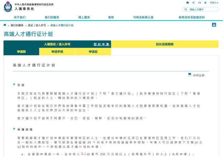 香港特區政府入境處對高才通計劃在官網發佈了相關問答,大家也可以看下作為參考。