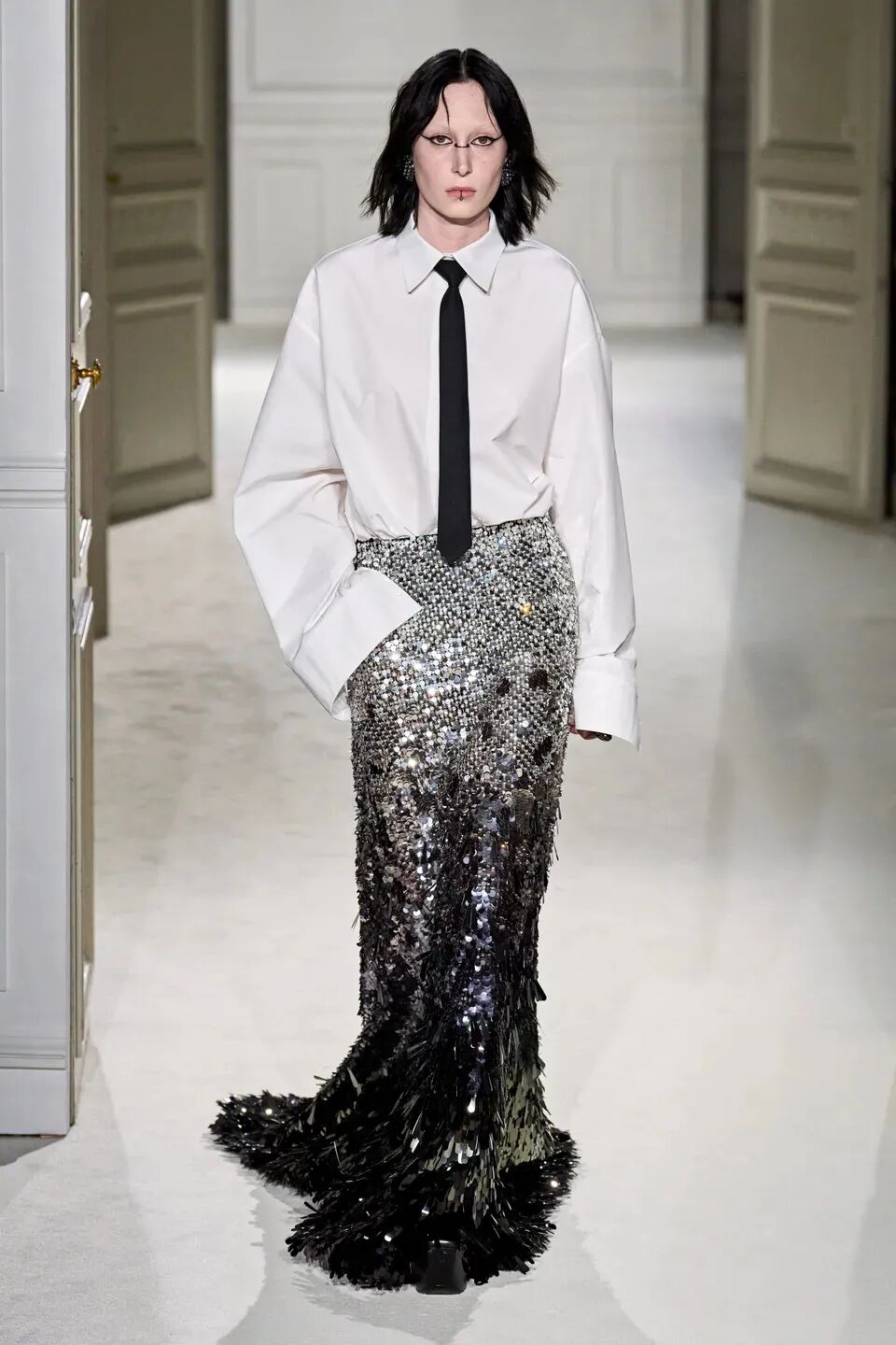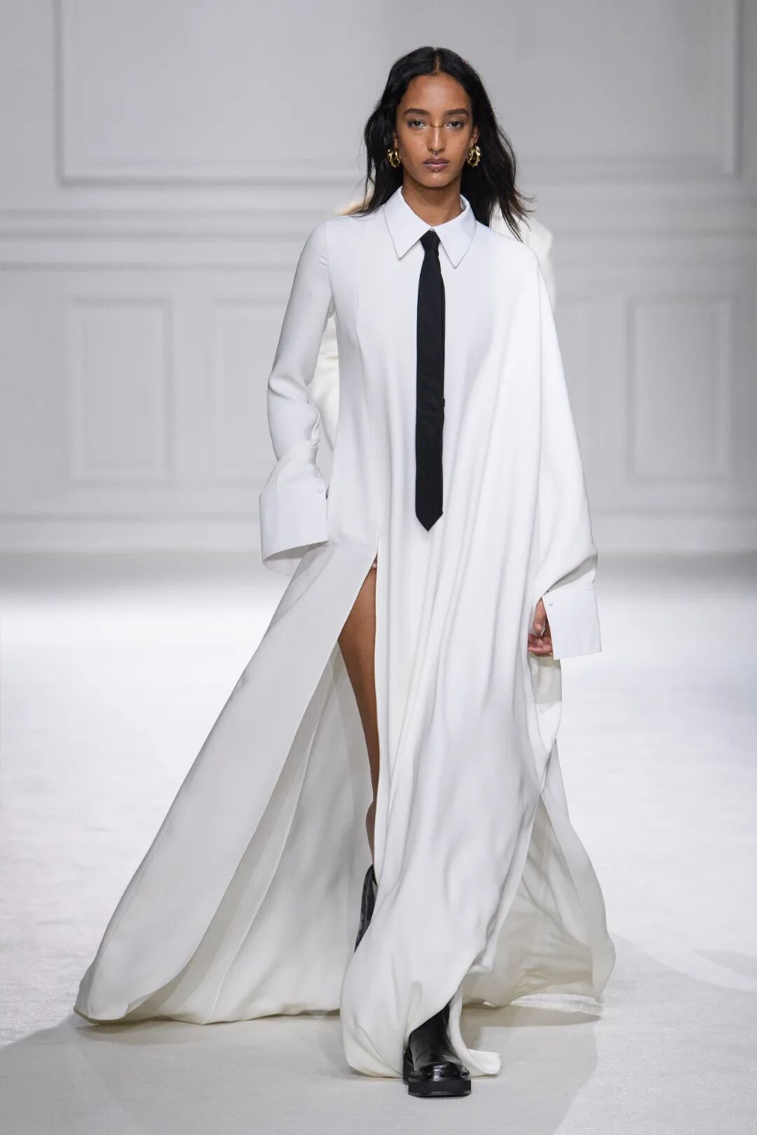 其中襯衫和領帶的融合尤為巧妙,男女皆宜,並無定式。在不同設計巧思的點化下,襯衫打破傳統印象,不僅能在日常風格中隨性搭配長裙或短裙,也能呈現各具鮮明風格的華麗禮服。