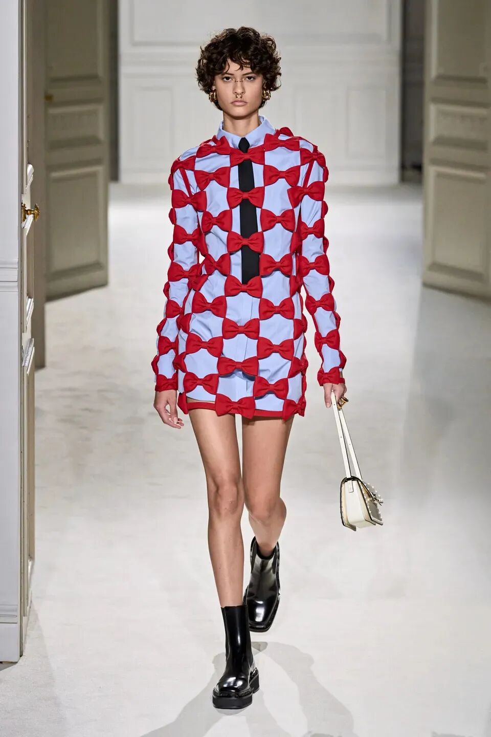 蝴蝶結一直是華倫天奴的浪漫標誌之一,PP也曾在2020早秋系列當中打造過45套蝴蝶結華服,本季蝴蝶結元素依然綻放著屬於它的專屬魅力。或大或小的裝飾出乎意料地出現在成衣各個細節,散發著少女的無限遐想。
