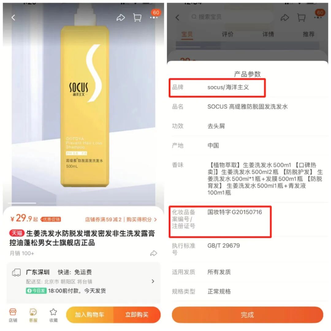 除了成分造假、虛假宣傳,KONO另一款熱銷產品“KONO生薑防脫固發洗髮水”還涉嫌“套證”,在監管灰色地帶瘋狂試探。