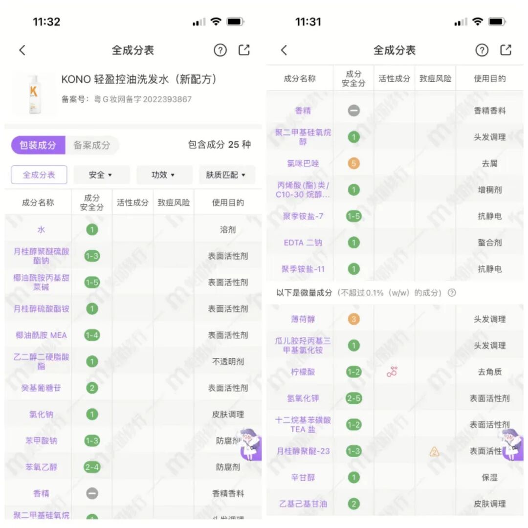 帶著這些疑問,我們也對產品進行了進一步的調查。以暢銷款KONO輕盈控油洗髮水為例,官方賬號宣稱添加了“煙酰胺能調節頭皮水油平衡,甘草根提取物可以舒緩止癢”