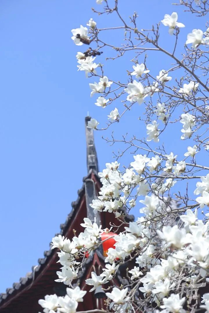 據史料記載,最早我國的玉蘭都是種在寺廟和皇家庭院裡的。除了法喜寺這株“網紅”玉蘭之外,杭州其他寺廟裡的玉蘭也正值顏值巔峰期!