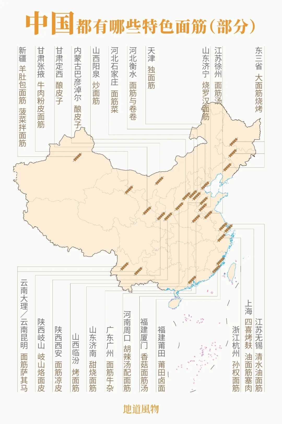 中國麵筋不完全圖鑑,一幅把人看餓了的地圖。製圖/孫璐
