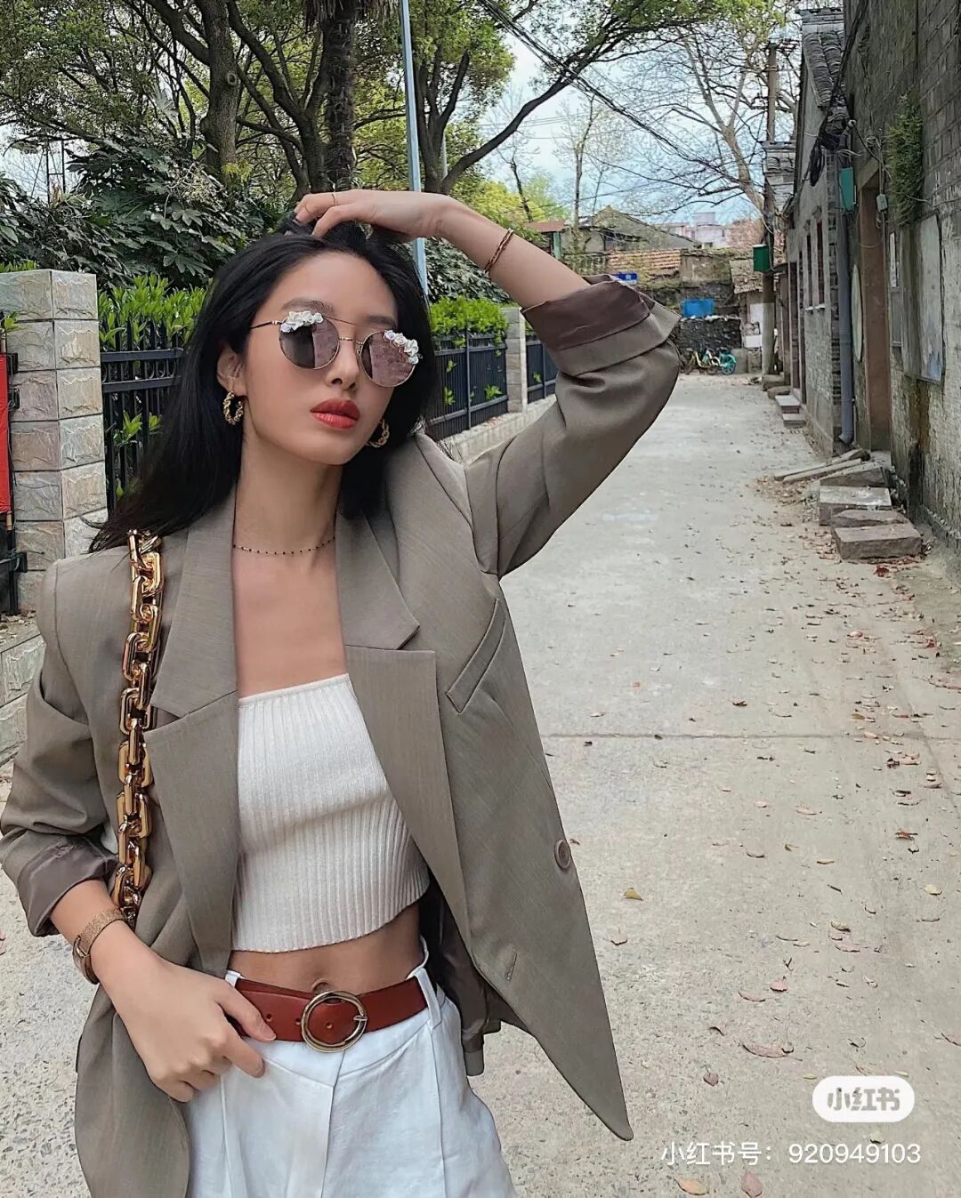 復古西裝的版型其實有很多,首先推薦的是收腰版型。一種是楊採鈺演繹的繫帶款,另一種則是通過圓滑利落的剪裁來收腰,兩者都兼具幹練與優雅。