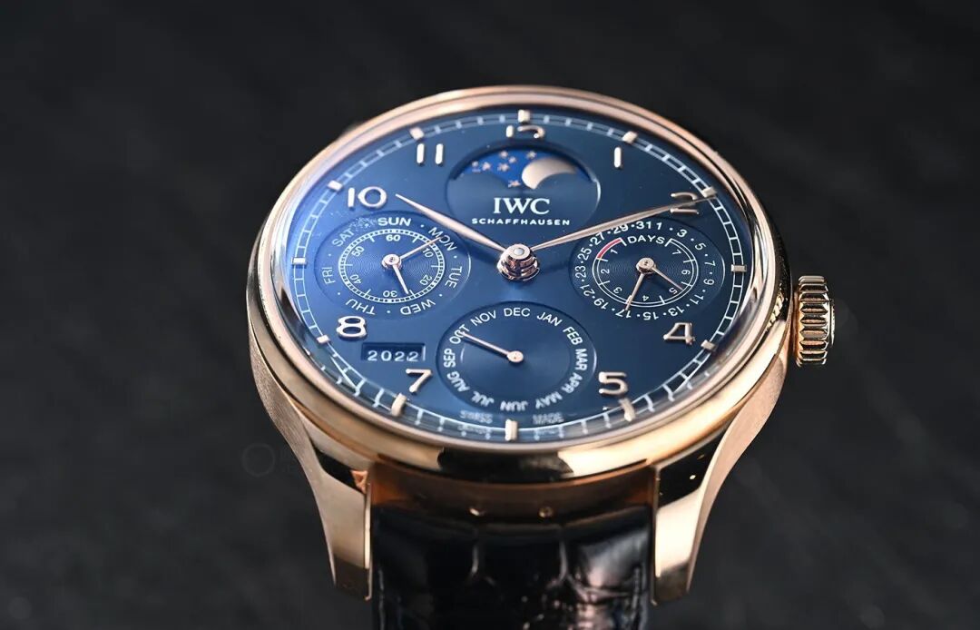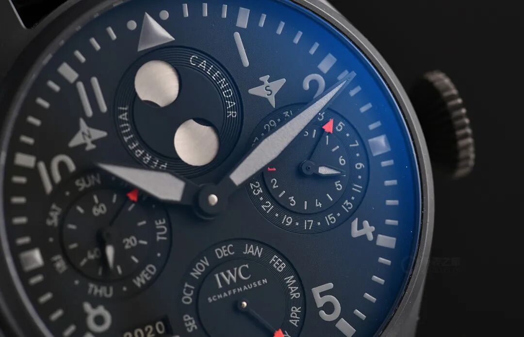 ▲萬國葡萄牙7日鏈萬年曆,盤面細節