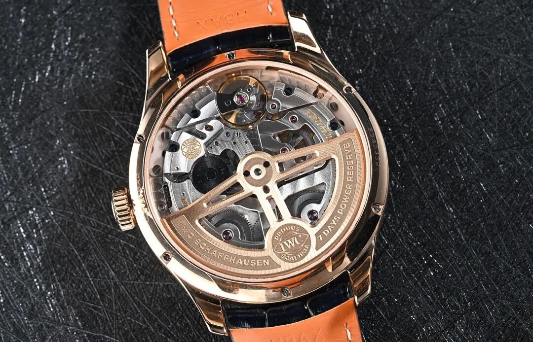 萬國7日鏈“一鍵調節”萬年曆,因為是7天長動力,屬於高配型號,公價會高一些。大型飛行員萬年曆,鋼殼,起步公價在24萬9;葡萄牙7日鏈萬年曆,在售都是金殼,起步公價在31萬8。