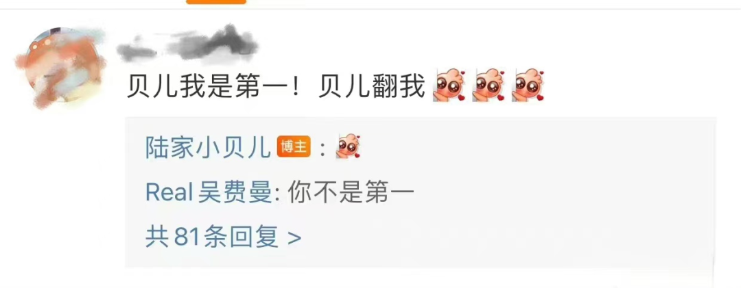 在確認是本人賬號後,開始給貝兒以前的視頻補回復,連網友的沙發也要搶↓