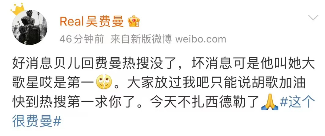 還替胡歌新劇的熱搜加起油來,字裡行間也是頗有點無奈意味↓