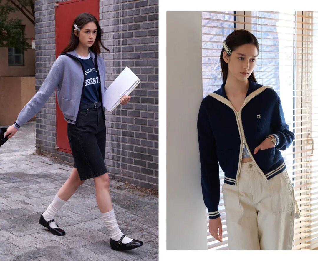 雙拉鍊的開衫就更實用了,你可以隨時敞開穿,剛好適合現在的溫度。