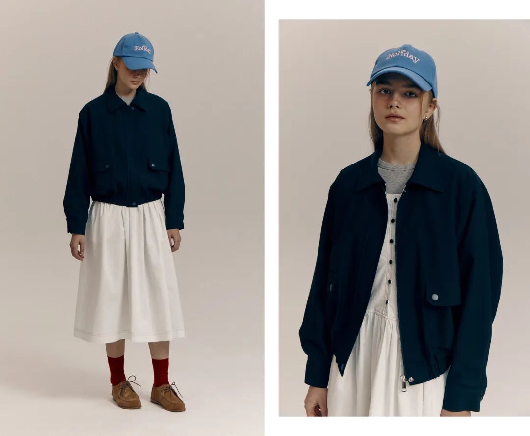 還有一件夾克小外套,薄厚適中,風格百搭,可以穿T恤牛仔褲,也能配一條純色連衣裙。