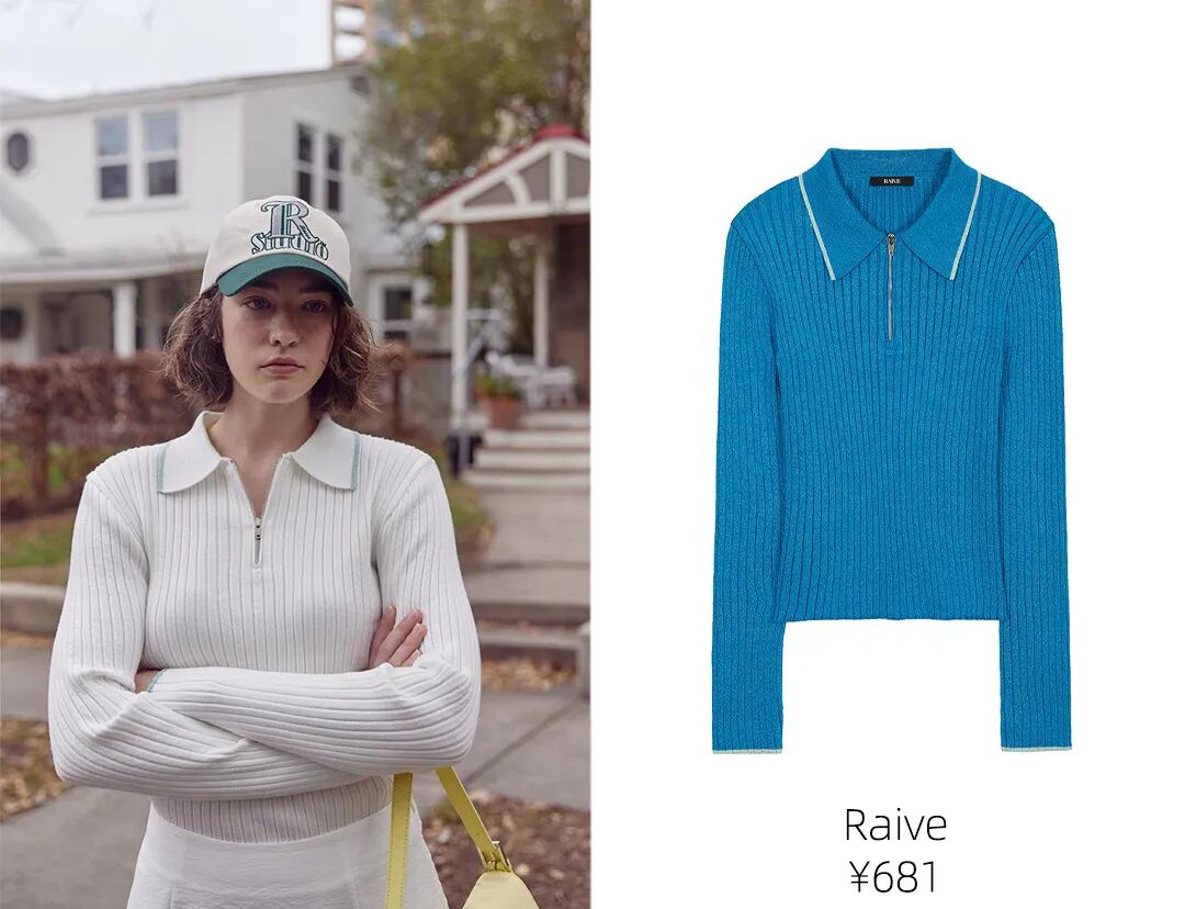 有半拉鍊的翻領修身針織,這種經典單品不易出錯,可塑性很強,配個棒球帽還很不一樣。