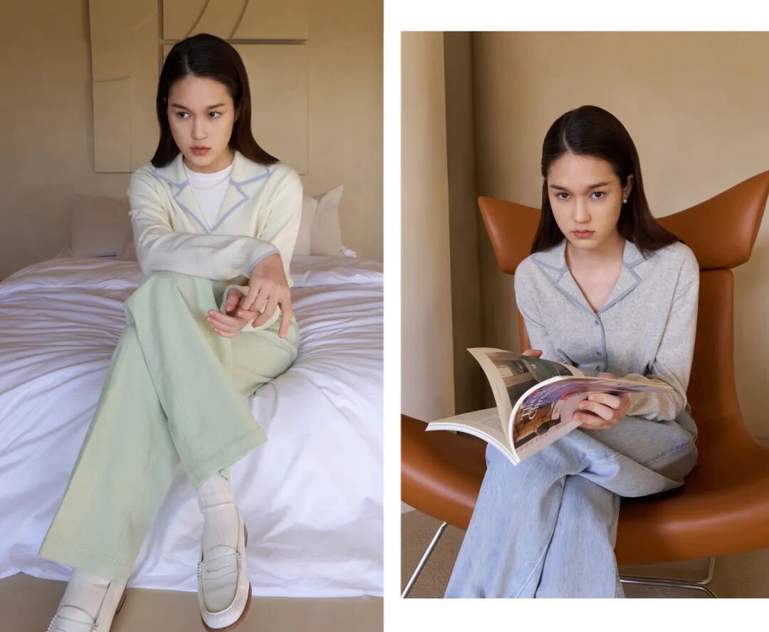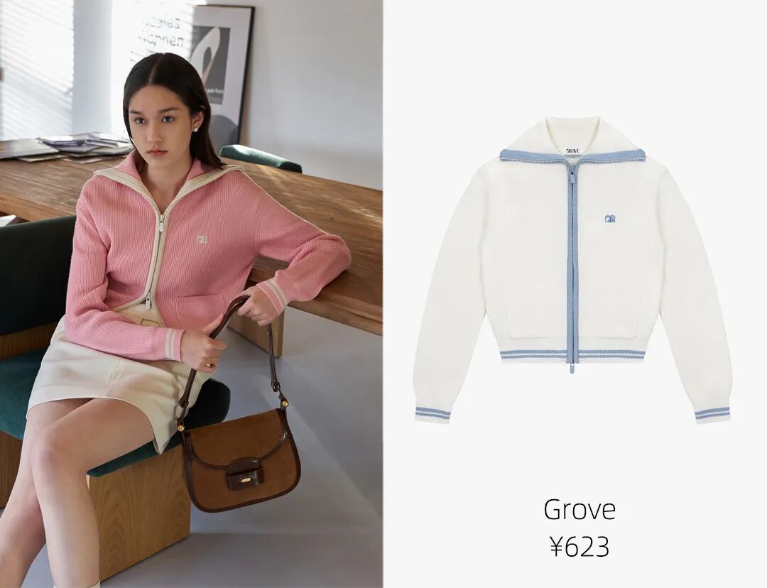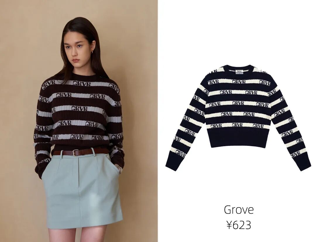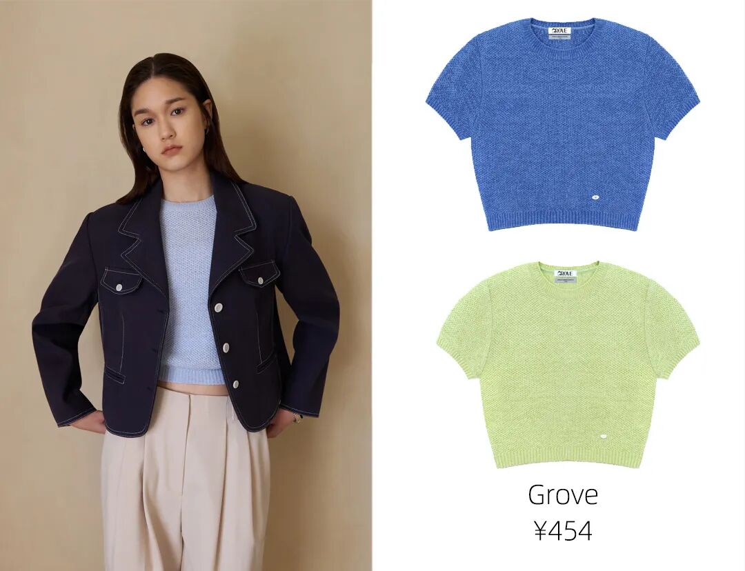 Grove今年回到了拿手的韓系簡約路線,按照慣例,我最推薦他們家的針織。小翻領很溫柔有氣質,不知道為什麼讓我想到林允兒,還蠻適合她穿的。