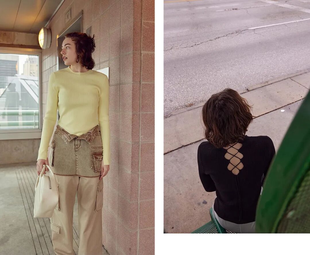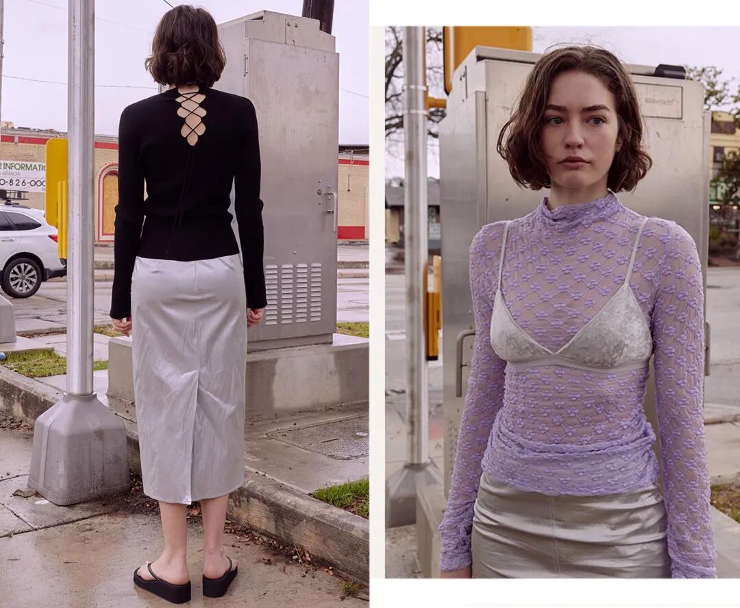 微透的打底衣能穿的方式太多了,裡面加小吊帶、時髦一點就“內衣外穿”,太high fashion了。