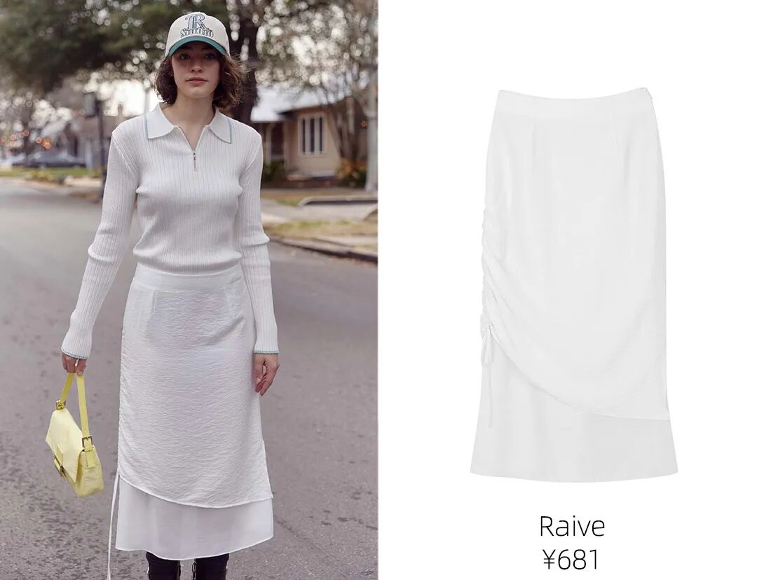 亮面半裙相比起來更加時髦一些,有點Emily in Paris的意思。