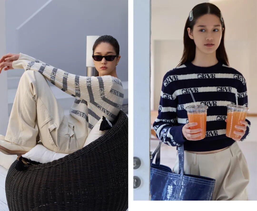 他家最有代表性的就是條紋帶有品牌slogan針織衫了,也是這季新品中銷量top1的存在。