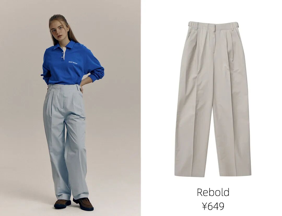 兩側打褶的直筒休閒褲出了深藍和白色,都是超級好搭的顏色,還能和別的上衣一起玩疊穿。