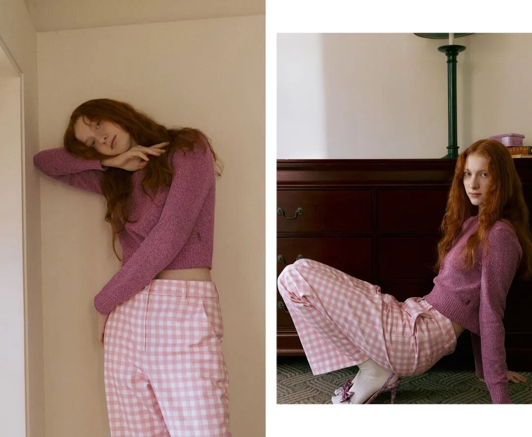 先安利給你們幾件粉白格子的單品,有小短裙,也有直筒長褲。