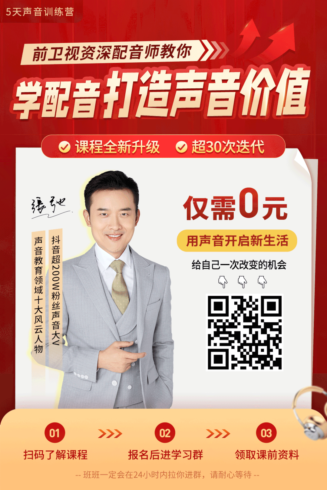 掃描下方海報二維碼,就能免費參與【5天聲音訓練營】,完成學習並考核合格就能獲得接單資源分享。