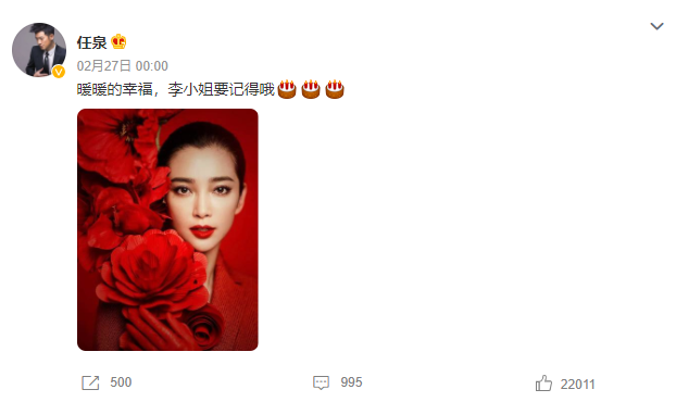 李冰冰生日當天,任泉一如過去12年卡點為李冰冰送上祝福。