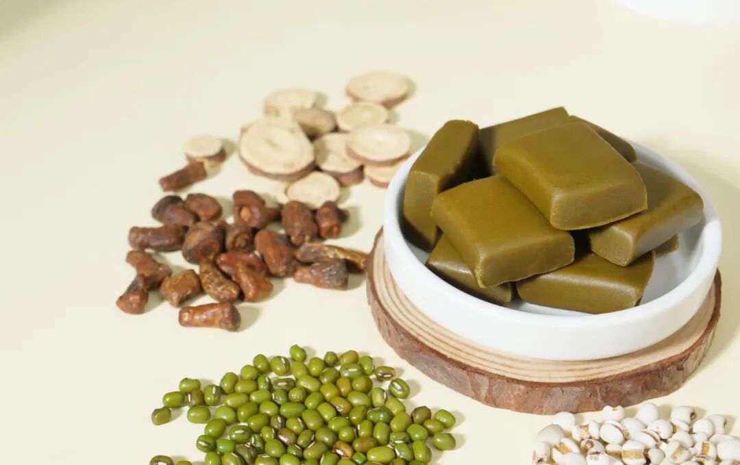 田陌上團隊攜手營養師,在桑葉、蒲公英、綠豆、薏米的基礎上,調配了多種食材,才有了這款田陌上青甘糕。