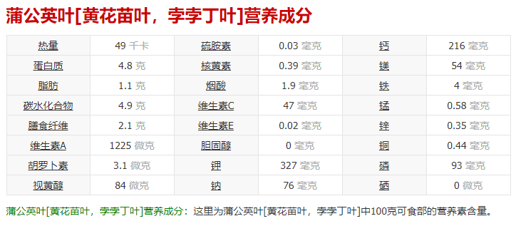 蒲公英中含有蒲公英醇、蒲公英素、蛋黃素等多種營養成分。
