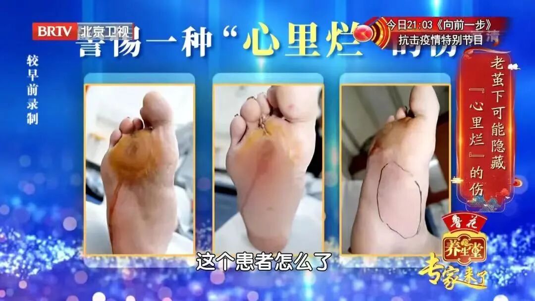 長期的血糖控制不好導致下肢血管病變,足底缺血,神經病變使足底對壓力、溫度都不敏感,出現這種“心裡爛”的老繭。