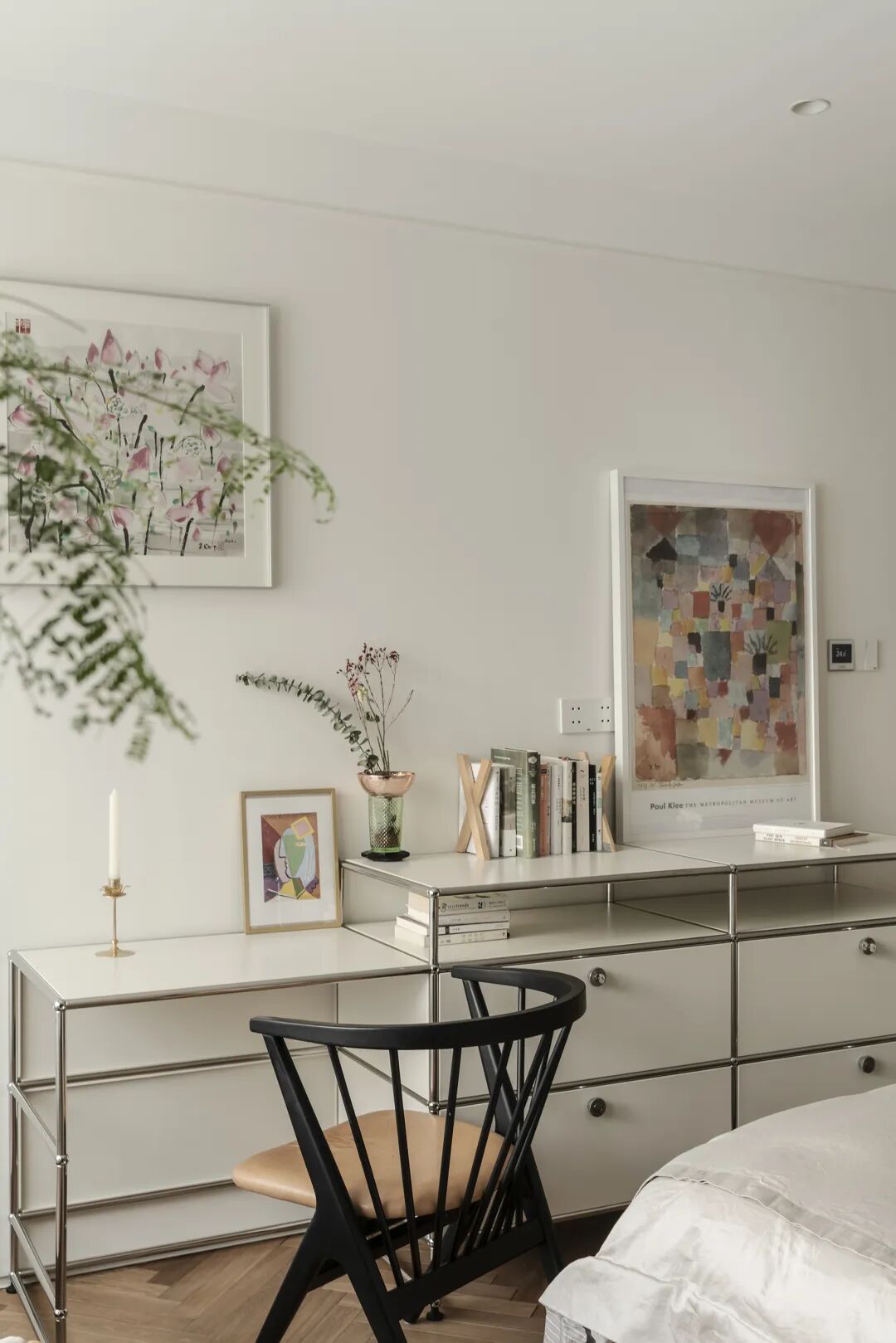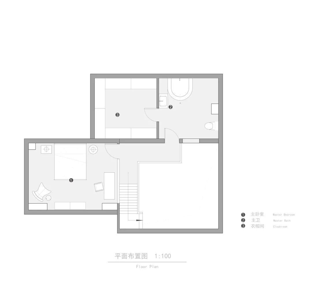 在原始空間中,整個二樓都是主臥,一半是睡眠區,一半是衛浴區,對屋主二人來說有些浪費。考慮到屋主在家工作的時間比較長,需要有一個固定的辦公區域,改造後將二樓的部分空間改為了書房。