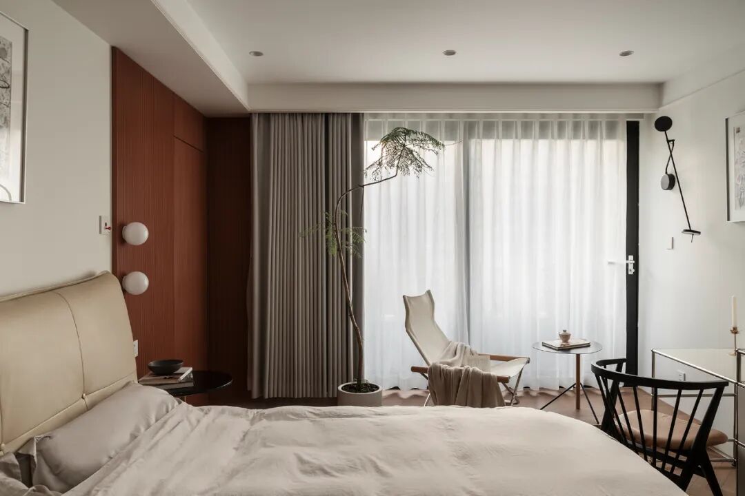 推開主臥,這裡竟然還“嵌入”了一處露營地。天氣好的時候,把推拉門全部打開,讓陽光盡情灑落,足不出戶就能獲得天然露營的同款體驗。