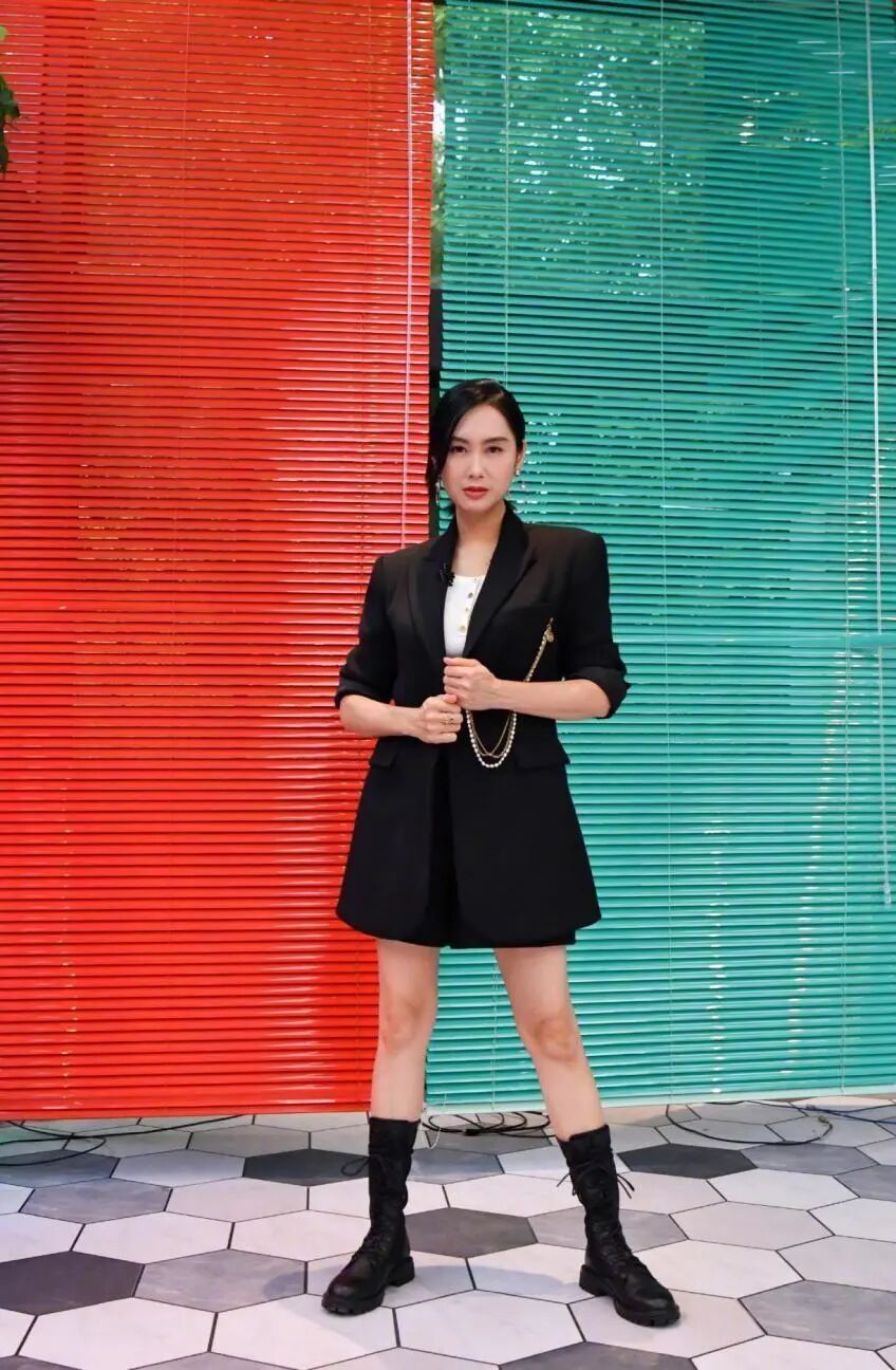 這裡需要注意的是,上半身的西裝款式一定要進行墊肩處理,讓肩膀處挺立起來,短褲的款式也儘量不要貼合大腿,選擇寬鬆款式,這樣會更加顯瘦,和靴子進行搭配的時候也會更加的契合,整個上寬下緊的搭配方式帶來更大的視覺反差。