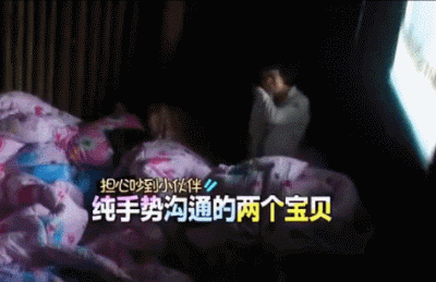 貝兒用手勢提醒其他小夥伴還在睡覺不能動▼