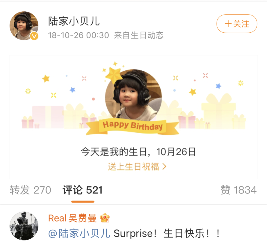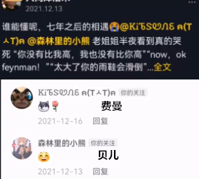 實際上長大後的費曼在擁有了自己的社交賬號後也有在關注貝兒的動態,