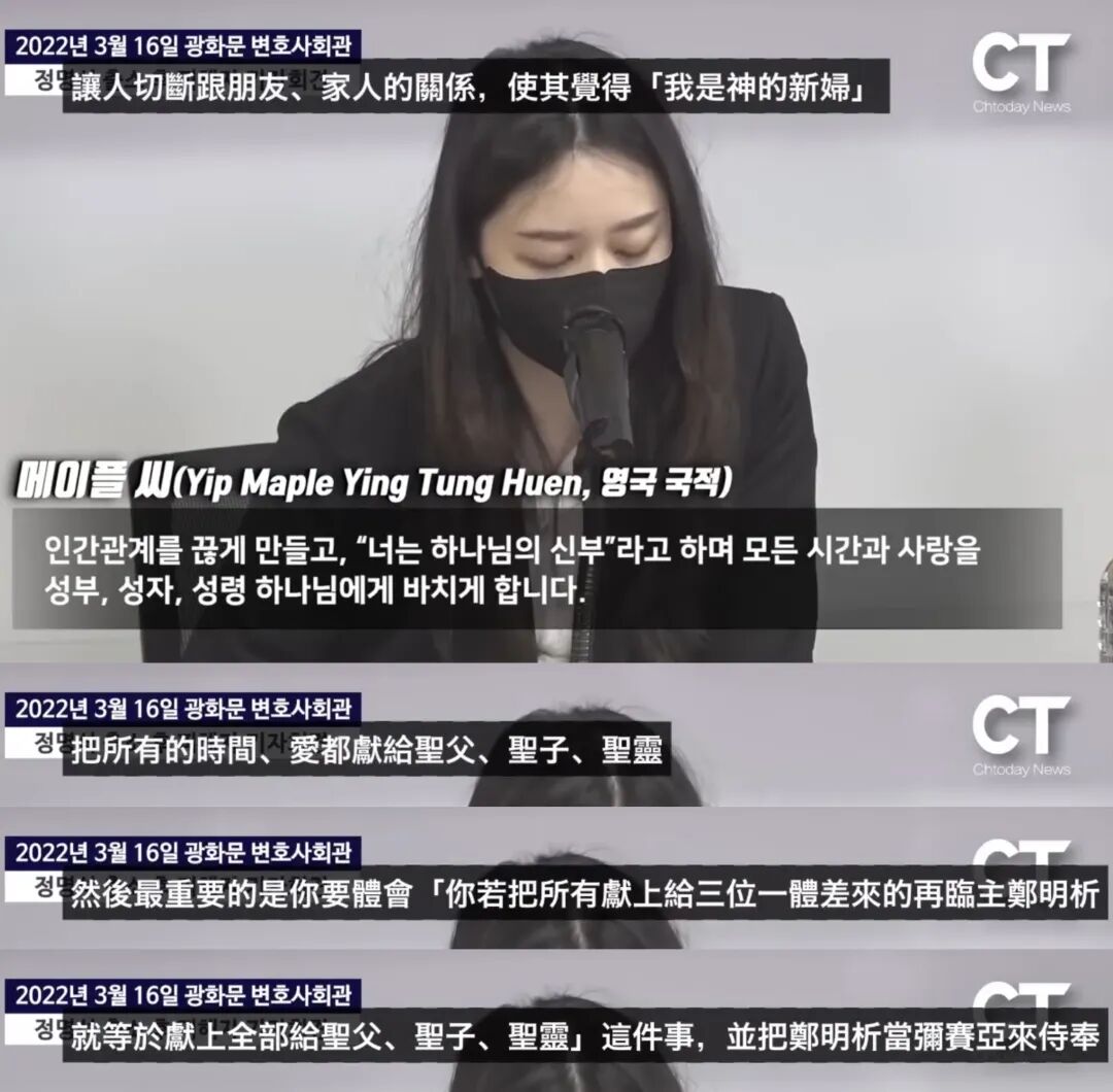 編輯:小黃柚即使方力申鄧麗欣的戀情足夠遺憾到讓人意難平好多年,但是這次方力申戀情曝光,比起之前意難平的論調,大家好像更有被方力申的新女友葉萱(Maple)震撼到誒…因為葉萱的經歷真的不簡單…之前有網友說,方力申女朋友和韓國某宗教性侵事件的受害者疑似是同一個人,結果前幾天Netflix拍攝的紀錄片《以神之名:信仰的背叛》(揭發韓國攝理教教主鄭明析涉嫌性侵女信徒事件)還真的有她…而且是實名制出鏡,公開接受採訪,講述自己被侵犯的經歷…當時十七歲的葉萱在銅鑼灣逛街的時候,被香港攝理教的人以問卷調查的方式接近,由於當時葉萱遭受過校園暴力,且父母不和等原因,就成了他們的發展對象。為了讓葉萱徹底放下戒備心…教會甚至還安排了一位女教徒(“姐姐”)去接近她…女教徒開始給她洗腦,並邀請她入教,葉萱在教會的十多年間,擔任過模特、歌手、主播、牧師…甚至還會為教會翻譯各種教主活動的直播或影片,(葉萱精通中文、韓文、英文)後來因為長相、氣質、學歷優越,被選為教會中的“Star”,“Star”通常被認為是“像一般宗教中不結婚的修女”,是“神的新婦”,且大多是美麗高挑的年輕女性,要把所有的時間、愛都獻給教會的教主鄭明析。會被進行特殊化管理,“把鄭明析當成新郎那樣生活”在被成功洗腦之後,在“信仰”的驅動下,又會成為帶人入教的“姐姐”一類的角色,賣力的傳教,為鄭明析挑選新的新娘告訴她們“沒關係的,放心吧”在鄭明析入獄期間,葉萱還會被帶去探監,出獄後,坐在鄭明析旁邊,鄭明析還邀請葉萱前往他的住處…從而讓葉萱產生某種“優越感”,更好地“操縱”她。2018年,葉萱第一次被性騷擾的時候雖然感到十分不適,且噁心,但是仍然在努力地說服自己,“這是上帝對我信心的考驗,是神對我的愛”每天還要向上帝祈禱,“讓我愛上鄭明析”但是鄭明析所做的一切都讓她備受煎熬,一度想要退出,卻又被“姐姐”洗腦,也找不到人傾訴,只能把所有痛苦都加重在自己身上,當時的海外信徒朋友讓她及時醒悟,鄭明析不是救世主,攝政教是邪教組織,勸她快逃。於是葉萱“請假”回到香港,並在告別的那一天,錄下了鄭明析的犯罪證據,決定起訴他。這紀錄片吧…看完之後真的緩不過勁來…真的太惡了…裡面的受害者也是不計其數,也有很多受害者通過匿名的形式接受採訪,而葉萱這種實名制舉報,顯然要遭受更大的“壓力”…光紀錄片裡所展示的,就壓得人喘不過氣來。 為了曝光一切,葉萱決定前往韓國召開記者會,消息一出,就被人私信騷擾↓ 出發的時候在香港機場被人堵截↓落地韓國機場被一路跟蹤,酒店樓下本人蹲點↓半夜被別人敲門↓壓力大到胃痙攣, 去發佈會的路上狂吐不止,但是還是堅持出席↓被工作人員攙扶著上臺↓好在爸爸媽媽都非常理解她,支持她勇敢的站出來指控鄭明析↓“我女兒沒有做錯任何事”誰也不能否認,她是勇敢的。接受紀錄片採訪,舊事重提無異於傷口上撒鹽,甚至還要接受輿論審判、某些網友的“指指點點”作為“方力申女朋友”,這種審判甚至會更加過分…比如這樣的但是她還是選擇實名制舉報,為的就是不想讓其他受害者繼續上當受騙…而且方力申也很支持女朋友、很欣賞她的勇氣…據坊間傳聞(知情人士爆料),葉萱和方力申是因為藝術結緣,葉萱到方力申爸爸的畫廊賣畫,兩個人志趣相投,從而擦出愛的火花這種說法也不是毫無道理… 因為方力申的爸爸確實是個畫廊老闆,而方力申本人喜歡收藏畫畫,自己也認證:“鑑賞方面”挺好的,還想要用這個來賺點老婆本希望未來能夠子承父業,繼承爸爸的畫廊,他的ins上也經常曬自己的珍藏品⬇️隔三差五就去看畫展⬇️可以說是“他超愛”了✌️而葉萱的社交平臺,雖然都設置成了私密賬號,(-art是她的網上畫廊)(這兩個賬號,方力申都關注了~)據港媒報道,葉萱是個藝術家,經常會在ins上分享畫作,方力申在接受採訪的時候也說了“有相同的興趣愛好”…還誇她“鄰家女孩、很體貼”見面第一天就告訴了方力申自己的經歷,但是方力申並不介意,父母認可,拍拖一個星期就已經見過家長了…紀錄片開拍的時候,葉萱也提過分手,但是由於太愛對方,所以決定繼續發展…且方力申還說會陪女友一起去韓國出庭…所以真正相愛的人也不會介意你的過去,只會與你感同身受,和你一起勇敢面對吧?葉萱是個勇敢的人,方力申也是一個比較Man的男朋友了~本來以為只是個戀情瓜,沒想到背後竟是如此的讓人咂舌最後一句希望鄭明析牢底坐穿 2023年 HAVE A GOOD TIME
